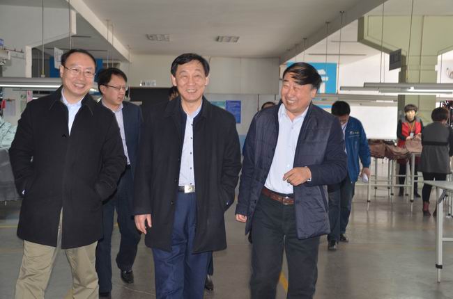 中國紡織工業聯合會會長孫瑞哲(左一)一行在視察,指導企業發展