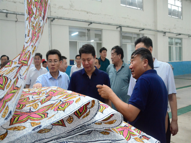 7月25日,濱城區高質量發展現場觀摩團領導一行到公司觀摩。區委書記、黨校校長張寶亮,區委副書記、區長張瑞杰等現場參觀了公司科技產業園花布二智能生產車間、工程技術研究院、創意中心等處。