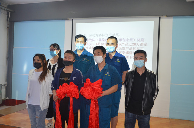 會上,車間對4月份競賽獎勵做了分配,A梯隊序列:第一名火焰戰隊(特整精益生產承包小組)118.42分,獎勵2500元;第二名烽火狼戰隊(340絲光精益生產承包小組)117.57分,獎勵1500元;第三名尖刀戰隊(320拉幅精益生產承包小組)112.08分,獎勵1000元;第四名精英戰隊(卷烘精益生產承包小組)104.02分,獎勵1000元;第五名烈火重生(360拉幅精益生產承包小組)102.05,獎勵1000元。B梯隊序列:電氣小組獎勵1500元,描稿小組獎勵1000元。4月份車間好員工信用度前十名:李建濤、李宜勇、王士波、馬蒙蒙、陳長興、王義明、劉曉斐、毛九濤、董路永、張乃順,每人獎勵100元;各戰隊戰斗力第一名:李海通、王士濤、池連國、韓濱峰、李洋、劉曉斐、靳希芝、聶永斌、楊猛、王偉、陳寶棟、管美艷,每人獎勵100元;改善提案(最多者):劉曉斐4項,潘運濤3項,肖澤周2項,每人獎勵100元。競賽特別貢獻獎的沖鋒戰隊(軋染精益生產承包小組),獎勵5000元;獵人戰隊(340退漿精益生產承包小組),獎勵4000元。精益生產維修與操作一體化小組啟動工作方案,在會上公布并正式啟動。