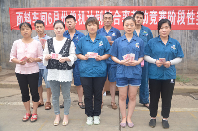 收到獎勵金的員工們臉上洋溢著喜悅。“收到勞動競賽獎勵非常開心,我們一定會再接再厲,為染好每一米布而努力!”面二車間5#打底機組組長程建龍說到。面料車間主任曹劍總結到:“此次階段性競賽獎勵的發放,主要是對第一階段完成獎勵的表彰,也是為6月份中、下旬再接再厲的發動。希望大家在已有成績基礎上,繼續戰高溫、斗酷暑,全力以赴,再創新佳績。”