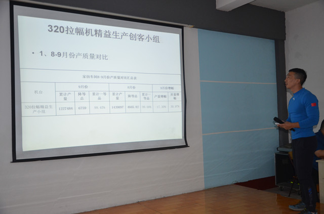 10月11日,公司家紡車間在職工大學大教室舉行了9月份精益生產總結會,對車間9月份的精益生產運行情況進行總結,并對相關問題進行剖析。各主要精益生產承包小組對自身的成績以及不足進行總結,并制定了后續改進計劃和提升目標。會議由車間技術主管鄭凱主持,車間主任王旭洲進行了全面總結并對持續深化精益生產工作提出了新要求。