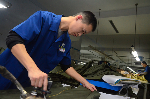 導讀:今年32歲的劉中雪是公司服裝車間的一名整燙工,進廠10年來,他每天的工作就是把一件件外銷工裝褲或上衣整燙好。