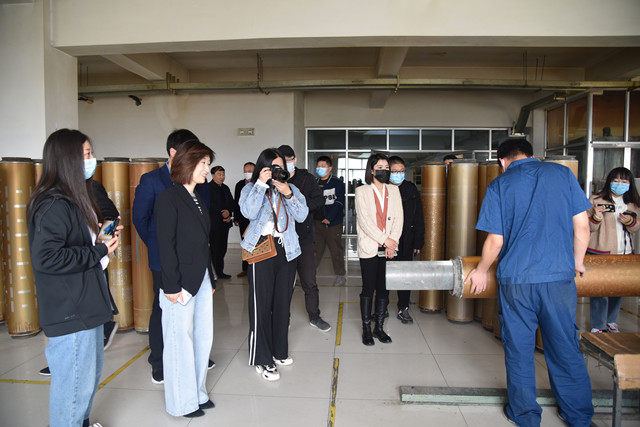 在公司領導陪同下,集中采訪的媒體記者參觀了公司花布車間、花布整裝車間、花布設計制版中心、中控室、智能綠色工廠建設項目施工現場、智云中心、檢測中心、綜合辦公區、家紡營銷及展廳、創意設計中心、工程技術研究院等區域。