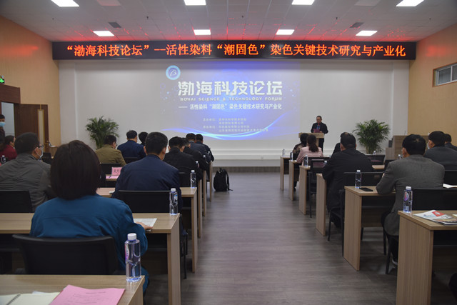 在本次渤海科技論壇上,來自東華大學化學化工與生物工程學院副院長、國家先進印染技術創新中心主任,教授、博士生導師毛志平做了題為《活性染料“潮固色”染色相關機理研究》的學術報告;山東省短流程印染新技術重點實驗室研發員、博士馬輝做了題為《活性染料“潮固色”工藝設計及優化》的學術報告;魯豐織染有限公司技術研發部經理、研究員齊元璋做了題為《純棉潮固色生產實踐》的學術報告;青島大學紡織服裝學院青年講師蔣陽做了題為《紡織化學品與染料創新促進印染行業高質量可持續發展》的學術報告。