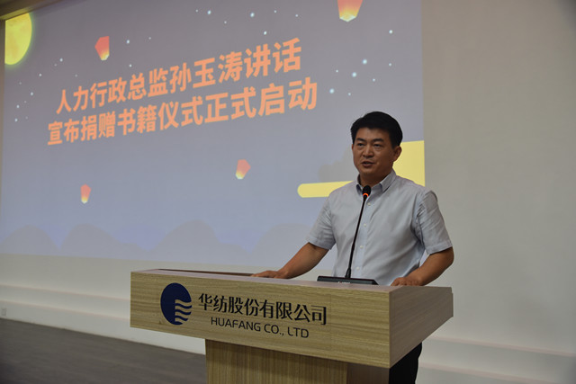 人力行政總監(jiān)孫玉濤在講話中談到,員工的文化素質(zhì)是企業(yè)形象的代表,是企業(yè)競爭力的核心力量。公司始終堅(jiān)持“人文華紡”的建設(shè),不斷營造文化氛圍,為員工文化素養(yǎng)的提升提供有效途徑。他指出,公司為滿足員工的文化需求,新建了圖書室,提供有益的精神食糧供廣大員工閱讀。他希望廣大員工在書籍中汲取力量、收獲成長,豐盈、充實(shí)自己的內(nèi)心,實(shí)現(xiàn)人生價值。他宣布,捐贈書籍啟動儀式正式開始。