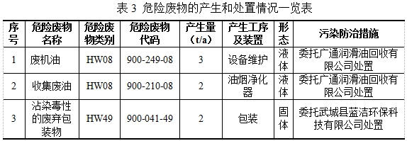 四、危險(xiǎn)廢物產(chǎn)生和處置情況