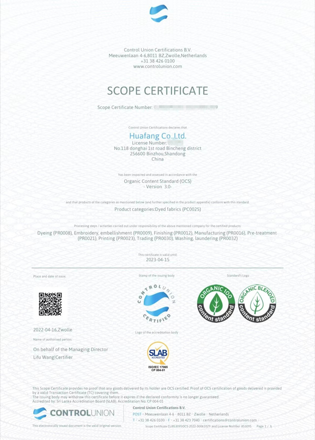 導(dǎo)讀:公司于3月份通過權(quán)威機(jī)構(gòu)的現(xiàn)場(chǎng)審核,順利取得GOTS/OCS/GRS證書。