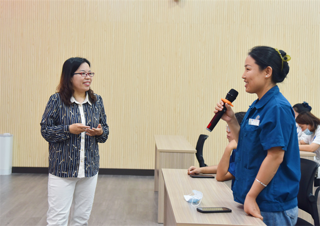 講座過程中,王春梅解讀了在家庭教育中“表達情緒”代替“用情緒表達”的內涵和意義。在就如何引導孩子正確感悟、培養孩子養成良好習慣、給予孩子成長力量等方面,通過講理論、舉實例、現場討論等形式,深入淺出的為女職工進行了分析和授課。