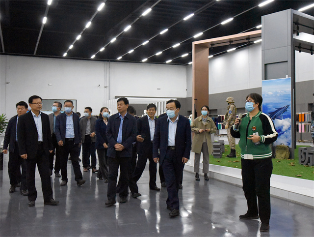 在兒童產品展區,兒童事業部負責人李紅向調研組介紹華紡兒童事業部的基本情況。兒童事業部產業涉及青少年校服、幼兒園服飾、幼兒園床品被褥、校園家紡用品、兒童毛巾、嬰童服飾、孕婦服裝、布偶玩具等領域。一直以來,兒童事業部始終堅持“兒童優先、綠色發展”原則,以兒童需求為導向、緊扣“兒童友好城市”主題進行統籌規劃,力求為消費者提供更舒適的產品。服裝面料分公司副總經理王吉昌就當前青少年服飾的特點等做了簡要匯報,介紹了青少年對于校服面料、款式、風格等元素的關注程度。