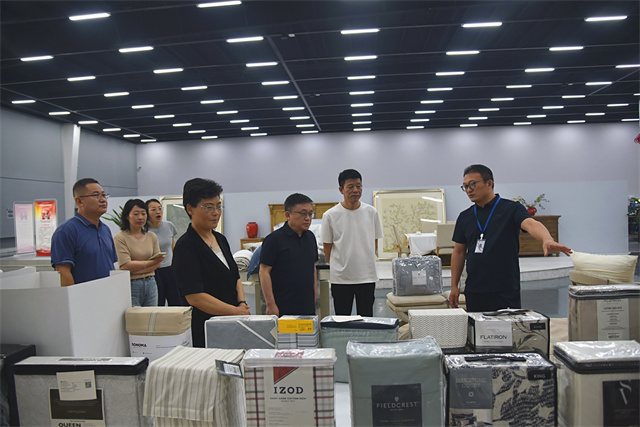 隨后,錢鎖梅一行到智云中心、檢測中心、綜合辦公區、服裝面料公司、花布公司、家紡公司、創意中心、研究院進行參觀,詳細了解了公司生產經營、產品研發、產業鏈延伸等情況,參觀過程中,雙方還就當下消費者的生活理念、消費習慣以及合作項目進行了討論。