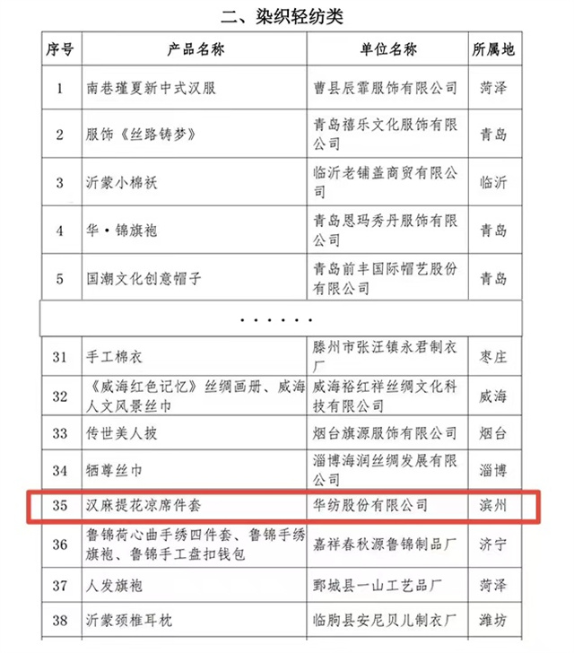 導讀:其中,公司家紡床品產品——漢麻提花涼席件套作為染織輕紡類,成功入選2023“山東手造·優選100”名單,這無疑是對公司產品品質與工藝的高度認可。