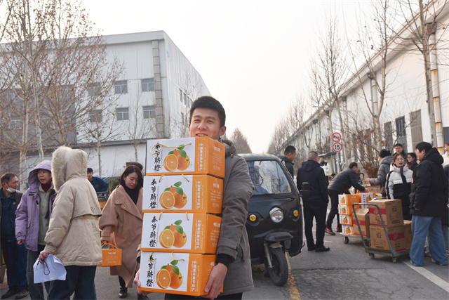 本次春節禮品包括豬肉、花生油、臍橙、熟食、床品等,員工可根據需求進行選擇。發放現場,一箱箱承載著公司滿滿心意的福利品陸續送到員工手中,每一份都經過悉心挑選,貼合員工日常所需,讓大家能溫馨過年。現場員工們笑逐顏開,紛紛表示真切感受到公司的關愛。