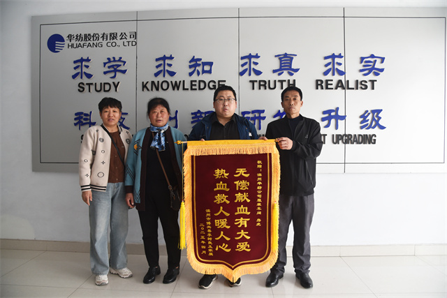 4月8日,服裝車間員工房虎收到了一面飽含深情的錦旗,上面寫著“無償獻(xiàn)血有大愛,熱血救人暖人心”。這面錦旗不僅是對房虎長期堅(jiān)持無償獻(xiàn)血善舉的高度認(rèn)可,更彰顯了華紡人熱心公益、奉獻(xiàn)社會的精神風(fēng)貌。