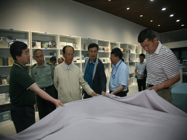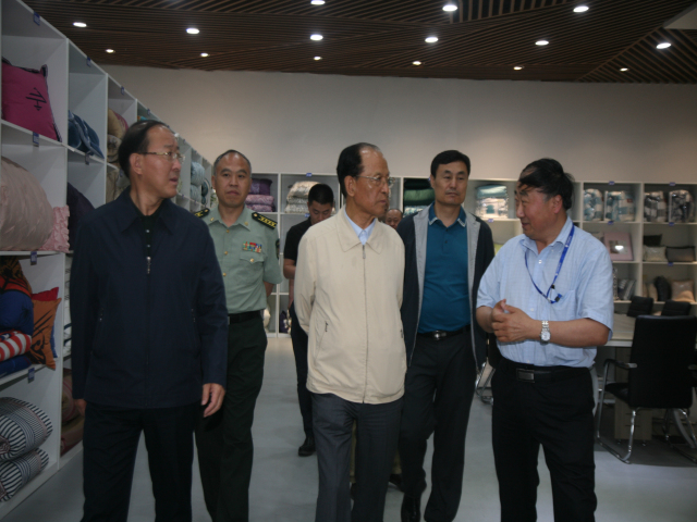 市人大常委會副主任呂德章,市政協(xié)副主席吳國瑞、趙建明,濱州軍分區(qū)參謀長許增全,公司黨委書記、董事長王力民,副總經理孫中然等,陪同張文臺上將一行參觀了家紡展廳等處所。