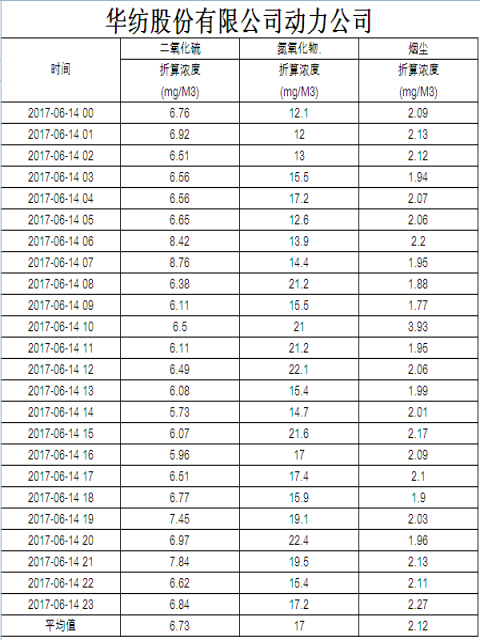 煙氣排放數據信息公開2017.6.14數據