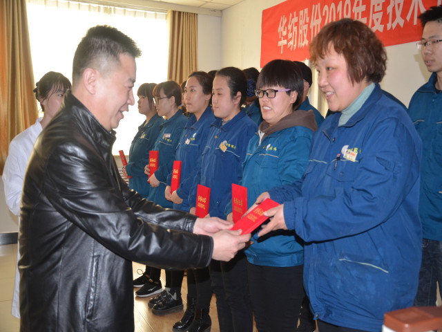 總工程師羅維新宣讀了《關(guān)于對2018年度綜合評比獲獎團隊及個人的表彰決定》和《關(guān)于對染整專業(yè)技術(shù)培訓(xùn)班(第七期)劉江等15人準(zhǔn)予結(jié)業(yè)的通報》;黨委書記、董事長王力民為獲得表彰的優(yōu)秀團隊面三車間技術(shù)團隊頒發(fā)獎狀;總經(jīng)理閆英山為27名優(yōu)秀技術(shù)人員和15名輪訓(xùn)班結(jié)業(yè)人員頒發(fā)相應(yīng)證書。優(yōu)秀技術(shù)人員代表韓延衛(wèi)和優(yōu)秀打樣員代表張齊先后發(fā)言。